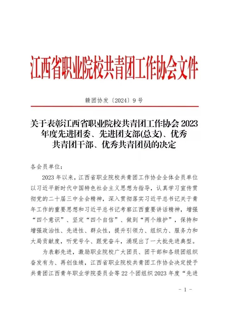 喜报 || 江西省职业院校共青团工作协会授予我校团组织和个人多项荣誉